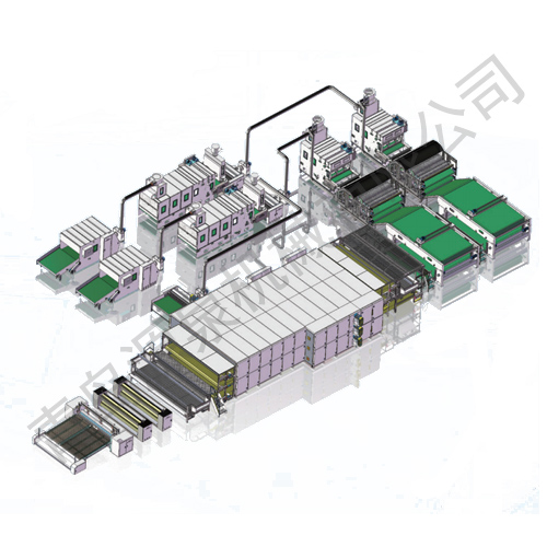 噴膠棉設(shè)備主要生產(chǎn)高彈噴膠棉、仿絲棉。熱熔、材等上膠、烘干、定型之用、設(shè)置前后(正反)噴膠,三層烘燥工作區(qū)。該產(chǎn)品廣泛應(yīng)用于服裝、床上用品、家具等。該生產(chǎn)線可根據(jù)客戶需求定制不同配置的生產(chǎn)線,如頭噴膠棉生產(chǎn)線,多機頭噴膠生產(chǎn)線等。