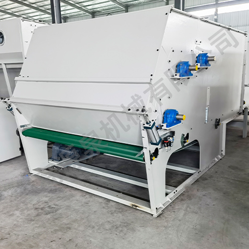把各種捆包纖維、原料經(jīng)電子稱重后,喂入平簾輸送至主體混倉(cāng)內(nèi),再由三道開松輥高速開松混合后,經(jīng)輸棉風(fēng)機(jī)以適量的風(fēng)量輸送纖維原料供后道工作使用。經(jīng)本機(jī)開松混合后的纖維、原料效果好,混合均勻,以備梳理使用。